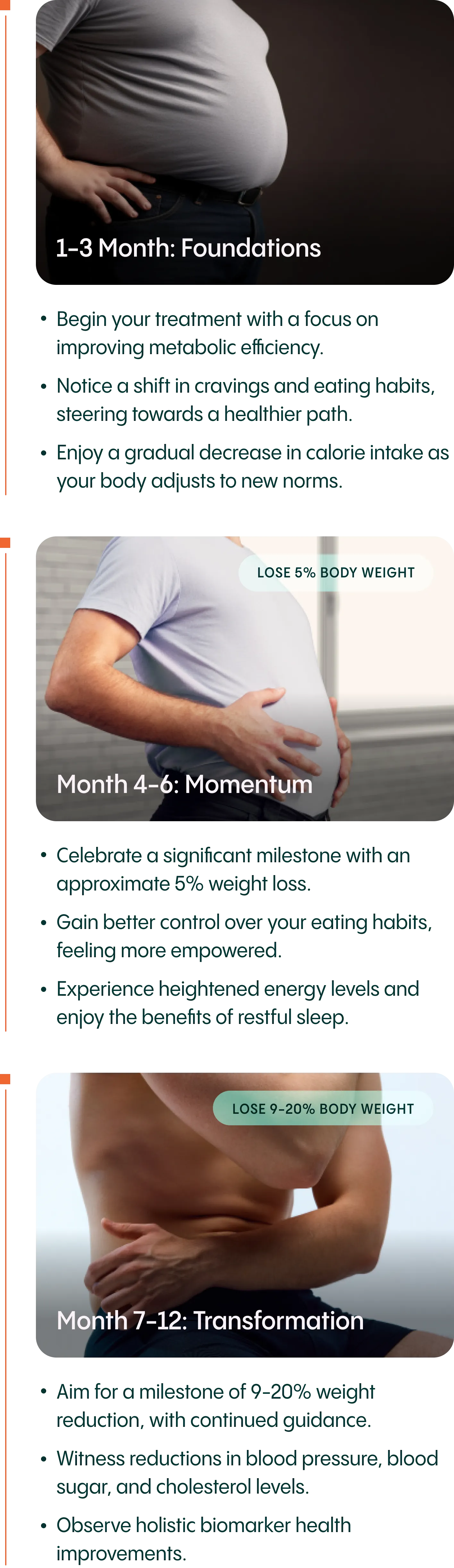 Stay on track with regular follow-ups and progress assessments. We'll support you at every step as you work towards achieving and maintaining your weight loss goals.